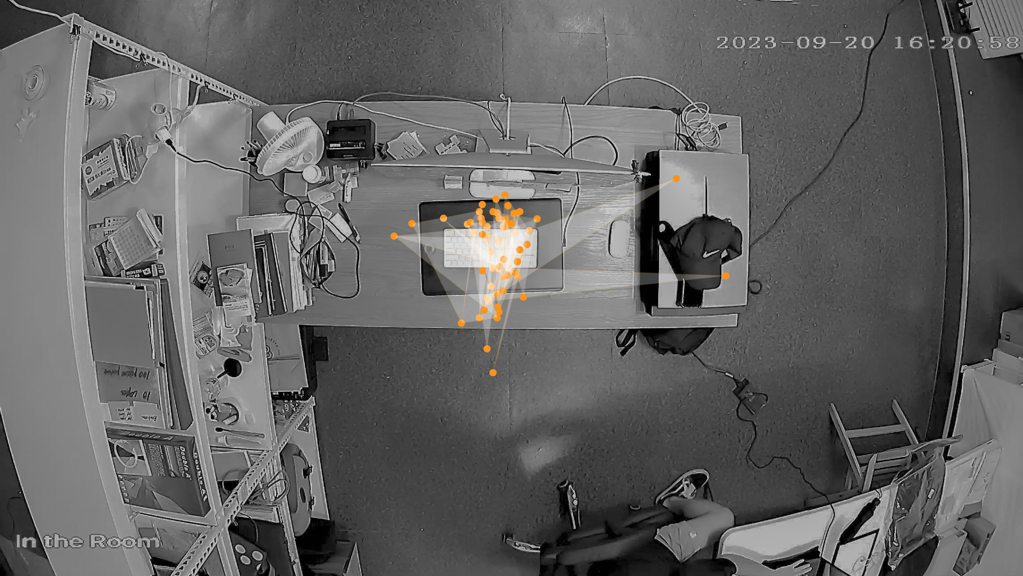 A significant portion of my daily activities unfolds within the office, with a substantial amount of time spent at the desk. I installed the CCTV camera on the ceiling above my desk and recorded a month's worth of life. Delving into a meticulous analysis of my behavioral patterns, I focused specifically on one week.